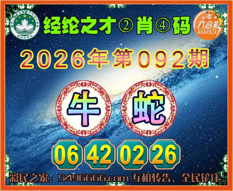 092期: 🧩《经纶之才》 🧩②肖④码🧩【蛇】【06.42.02.26】开:牛06