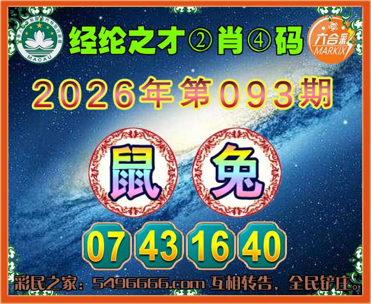 093期: 🧩《经纶之才》 🧩②肖④码🧩【鼠】【07.43.16.40】开:兔40