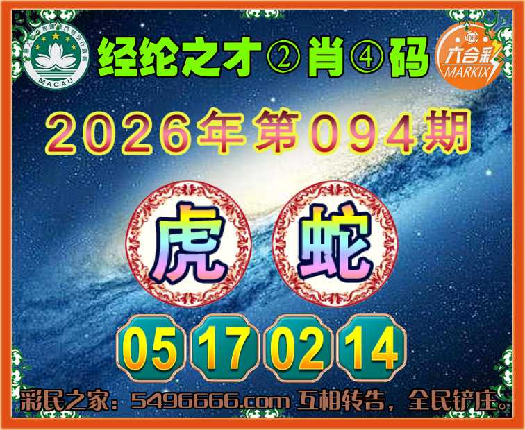 094期: 🧩《经纶之才》 🧩②肖④码🧩【蛇】【05.17.02.14】开:虎17