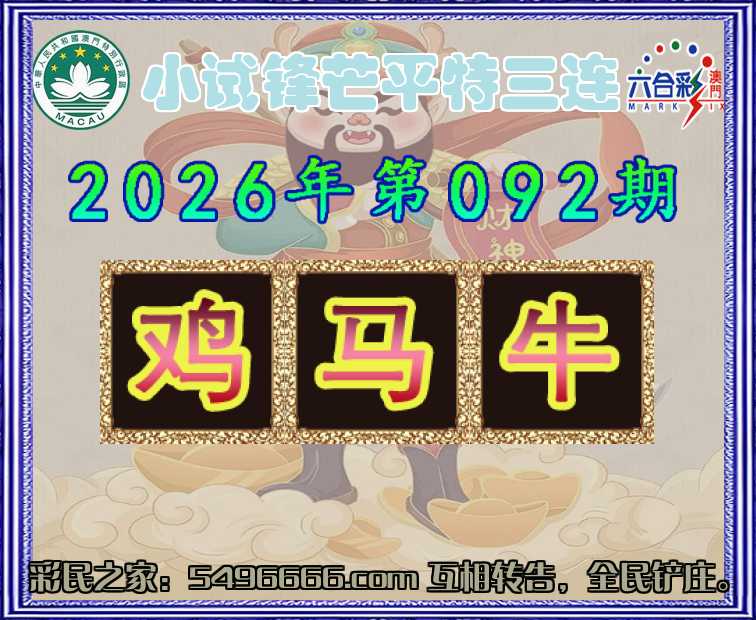092期:〖小试锋芒〗🎉平特三连🎉【鸡马牛】开:鸡46,马25,牛06准